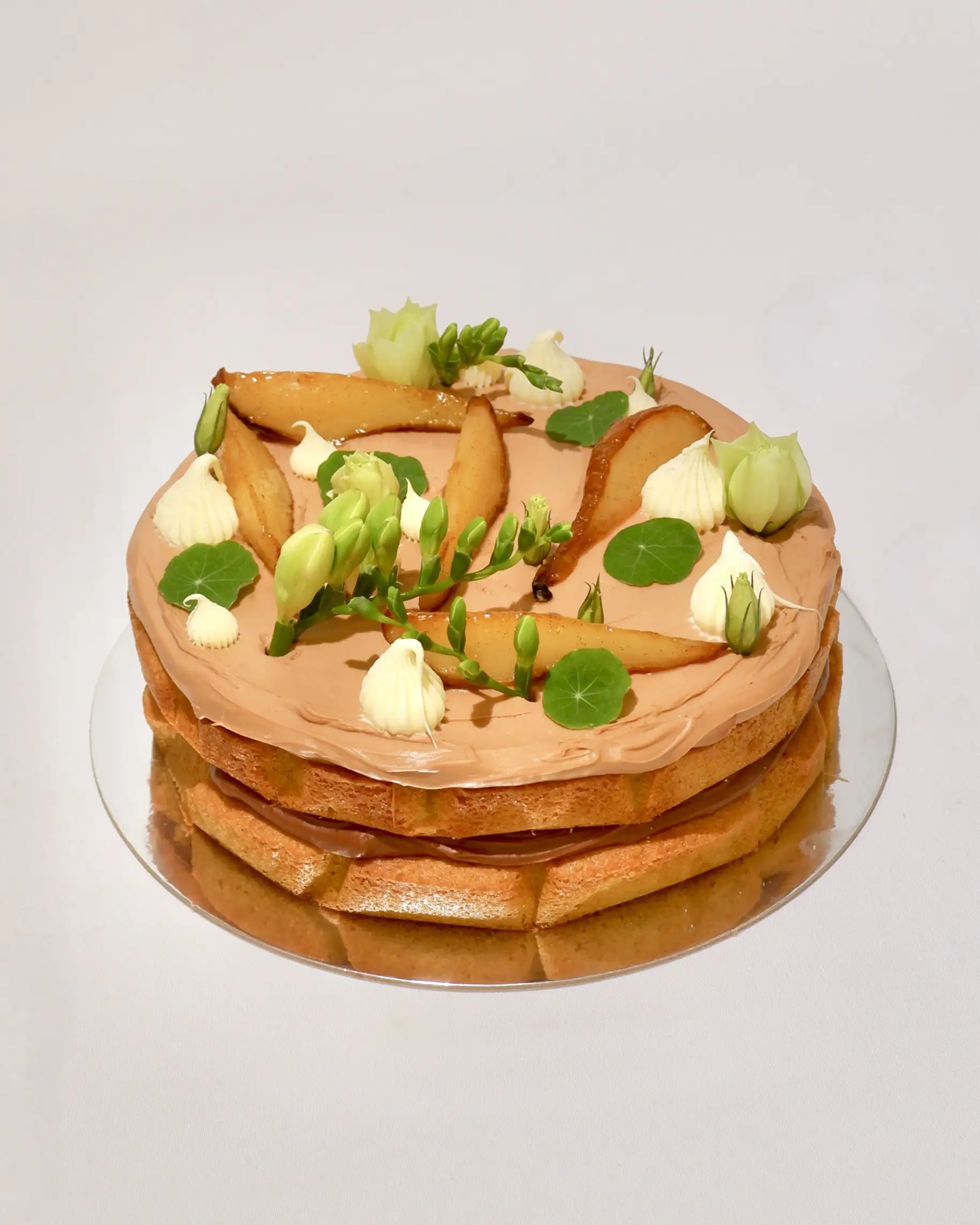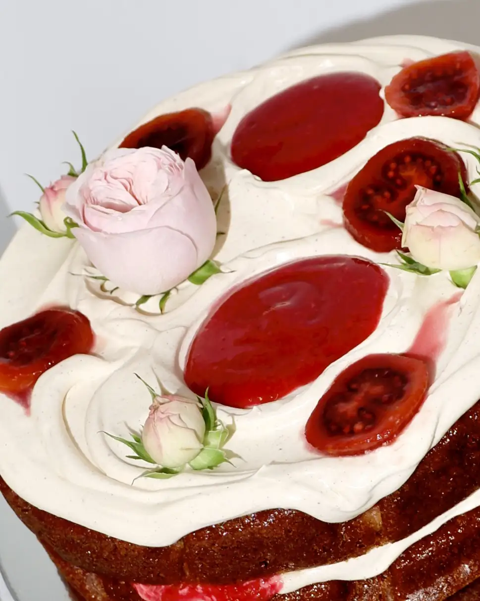 My Los Angeles bakery is a small operation, but I bake weekly for all sorts of events, including weddings. All the cakes I make are very custom and the decorations will vary. The flavors available are my core flavors but I offer seasonal cakes too.