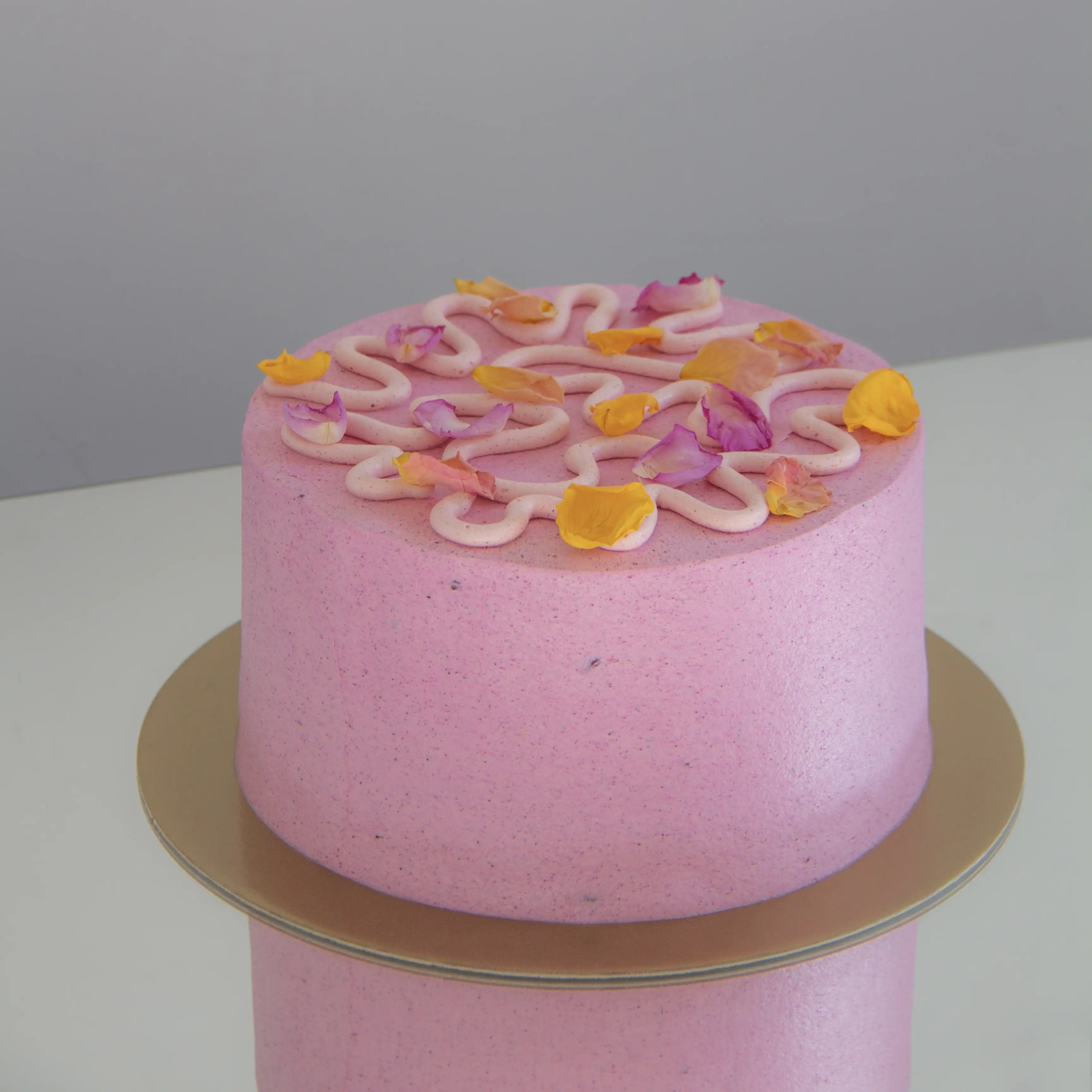 Where applicable you can choose to have your cake iced completely in a full coverage style, in a nearly naked style (with the icing scraped back) or completely naked (iced just between the layers). I can add freeze-dried fruit powders to make icings certain colors including pink, peach and purple.